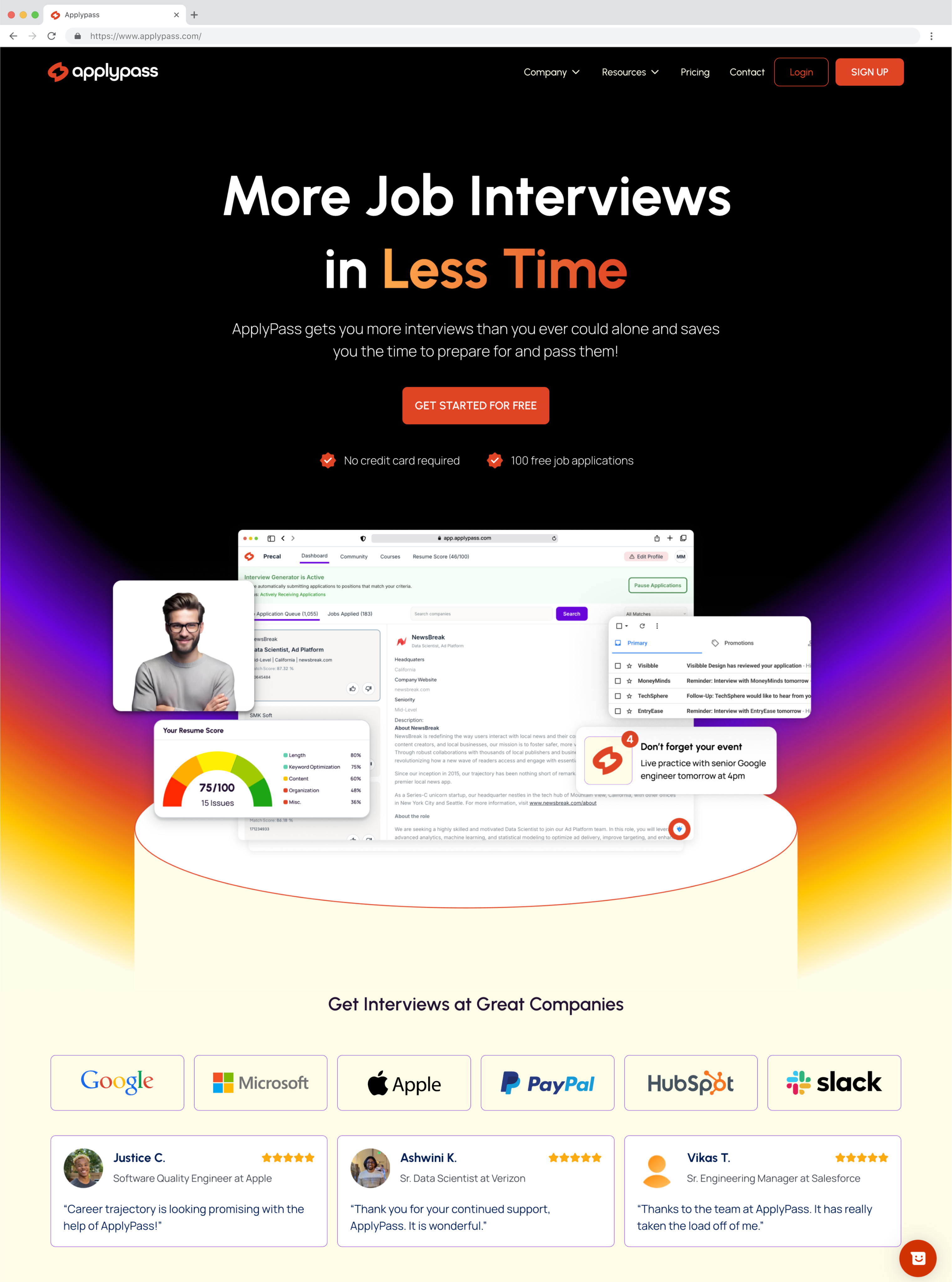 ApplyPass is an AI-powered platform designed to automate job applications and optimize resumes, helping software engineers and tech professionals land more interviews faster.